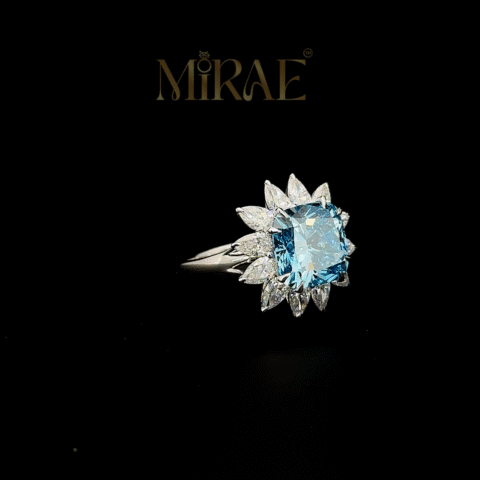 Ocean Sunburst Blue Solitaire Lab Grown Diamond Ring