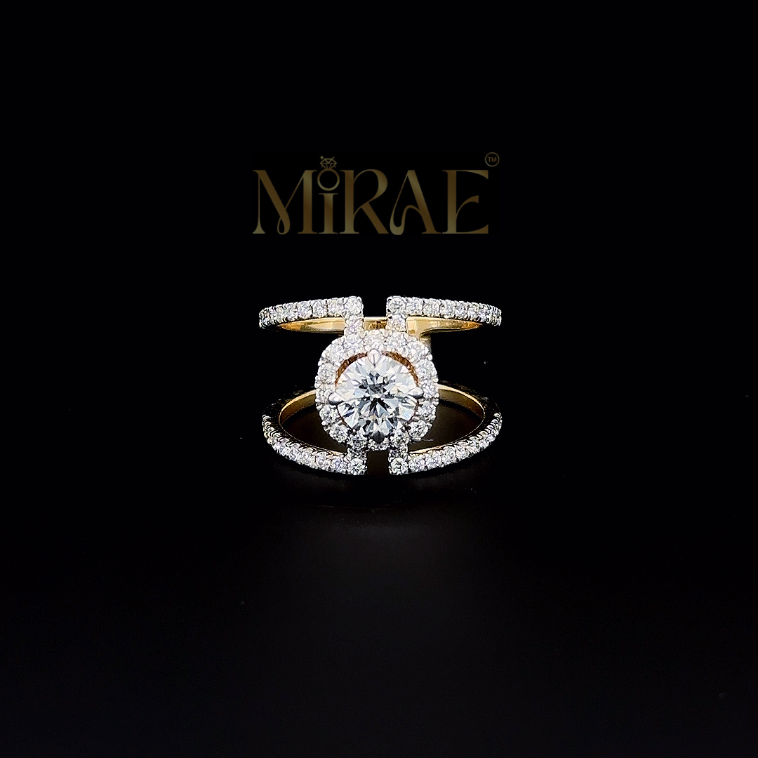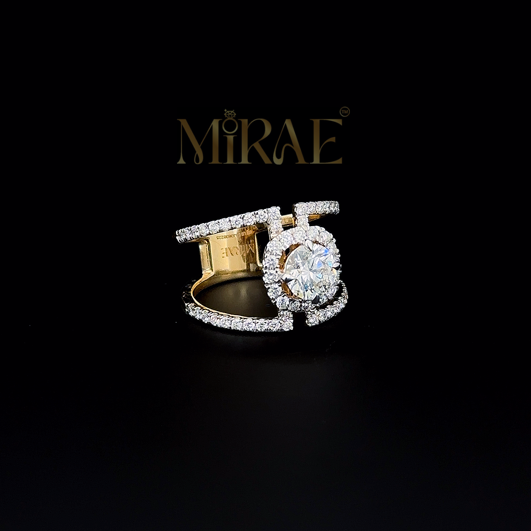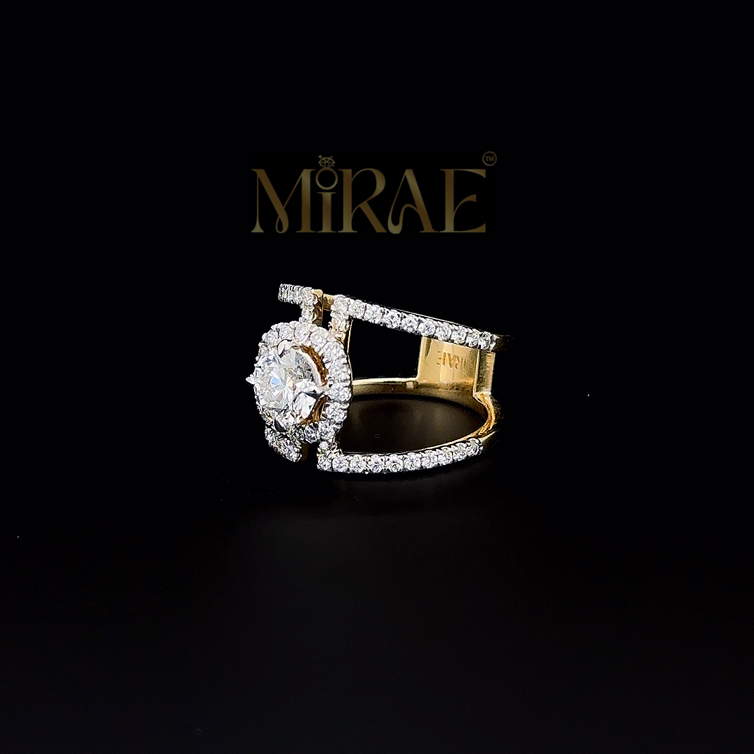1 ct Solitaire Helo With Wide-Band Lab Grown Diamond Ring