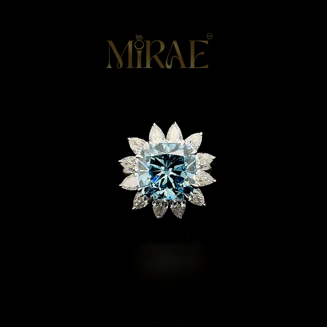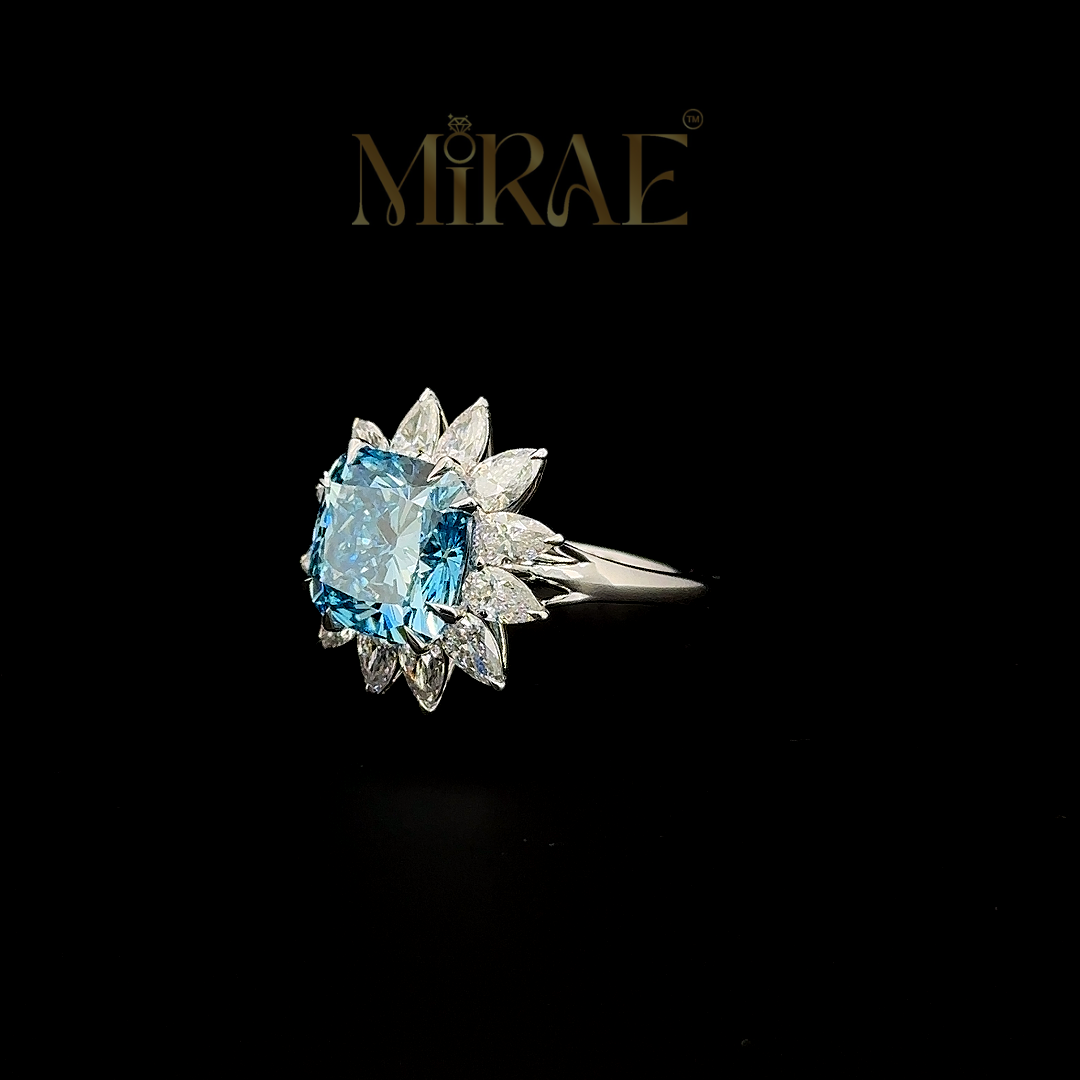 Ocean Sunburst Blue Solitaire Lab Grown Diamond Ring